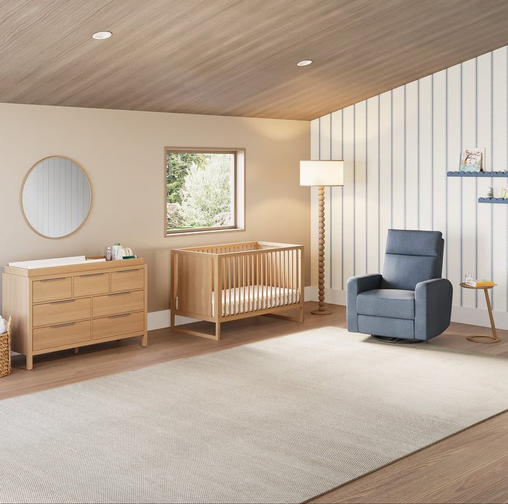 Crafted from sustainably harvested wood, The Newport Crib offers a modern, premium design that grows with your baby. Fully adjustable and built with non-toxic materials, it ensures safe sleep and long-lasting durability for years of comfort and style.