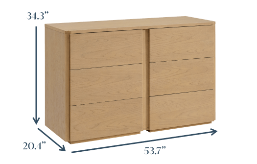 Modern convenience meets timeless design. Crafted in a smooth light wood finish, The Brooklyn Dresser features 6 spacious drawers and adds a serene touch to the nursery but can easily transition into any room in the house.
