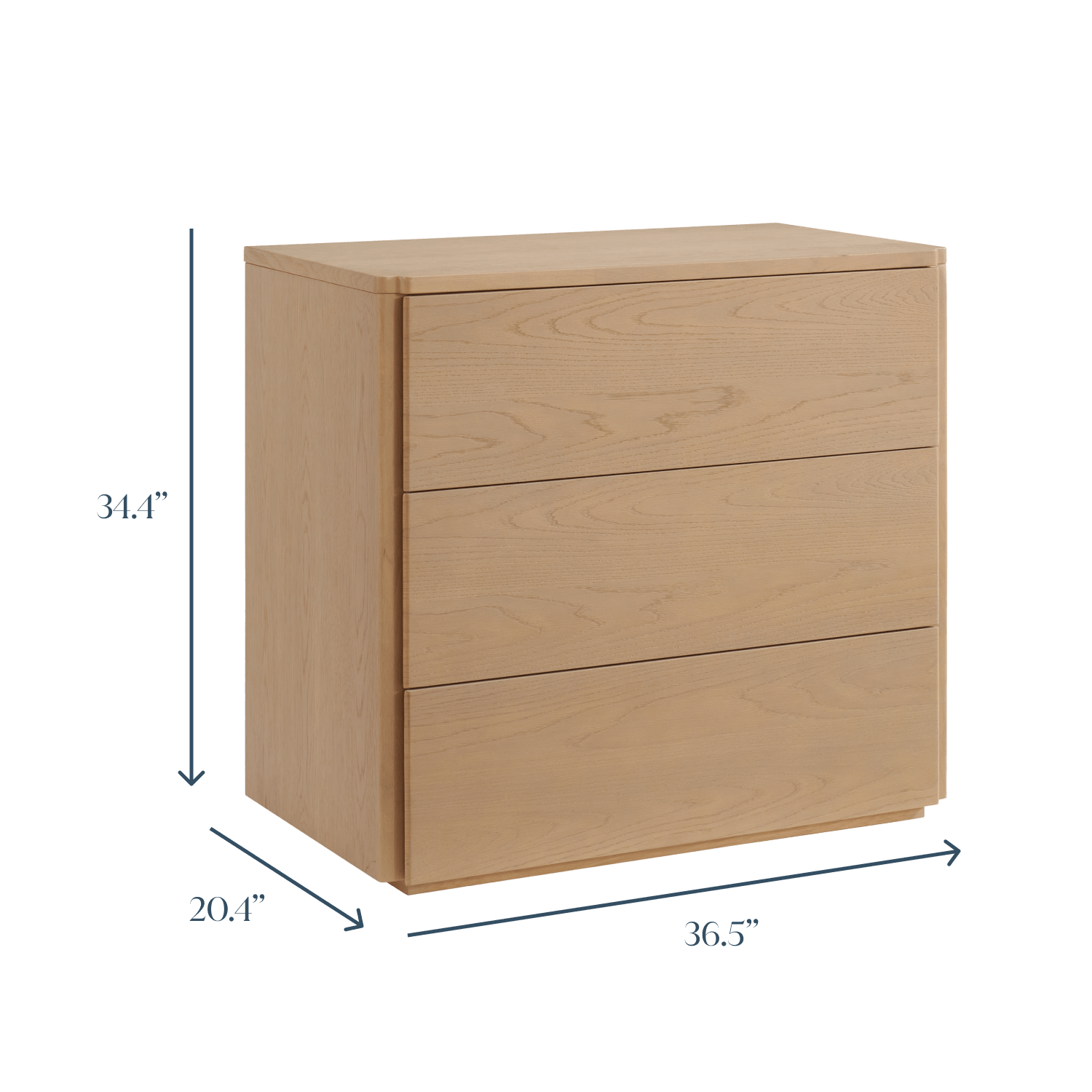 Compact and versatile, this dresser features three spacious drawers for ample storage. A matching changing topper (sold separately), guarantees that it will become a mainstay in your home long after the diaper days are over.