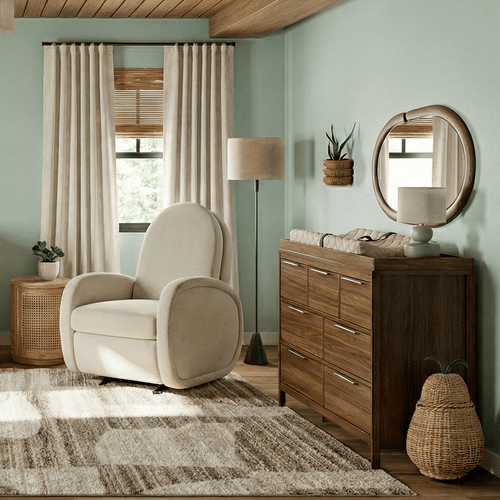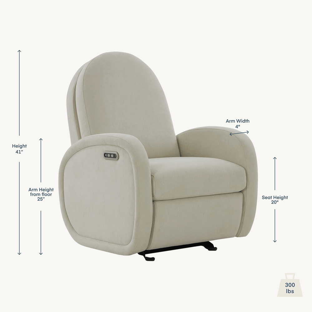 The Austin Glider brings sculptural style and everyday comfort to the nursery. Its curved arms, rounded silhouette and tall, supportive back add personality to any space. A smooth power recline and glide, non-toxic stain-resistant fabric and a built-in charging port make it easy to settle in for feeding and bonding moments.