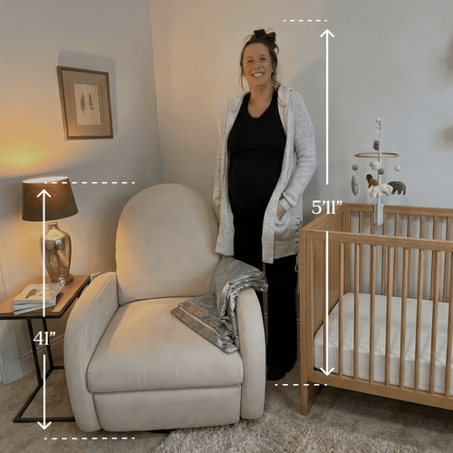 "I instantly loved this glider. The soft curves and tall back feel supportive, and the design is beautiful without overpowering the room. It’s comfortable now and feels like a chair I’ll rely on once baby arrives.”