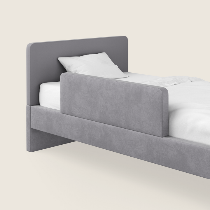 Designed with safety and durability in mind, The Kids Bed features rounded corners and is made with non-toxic, stain-resistant fabric. Matching safety rails are available to keep your little ones safe and snug.