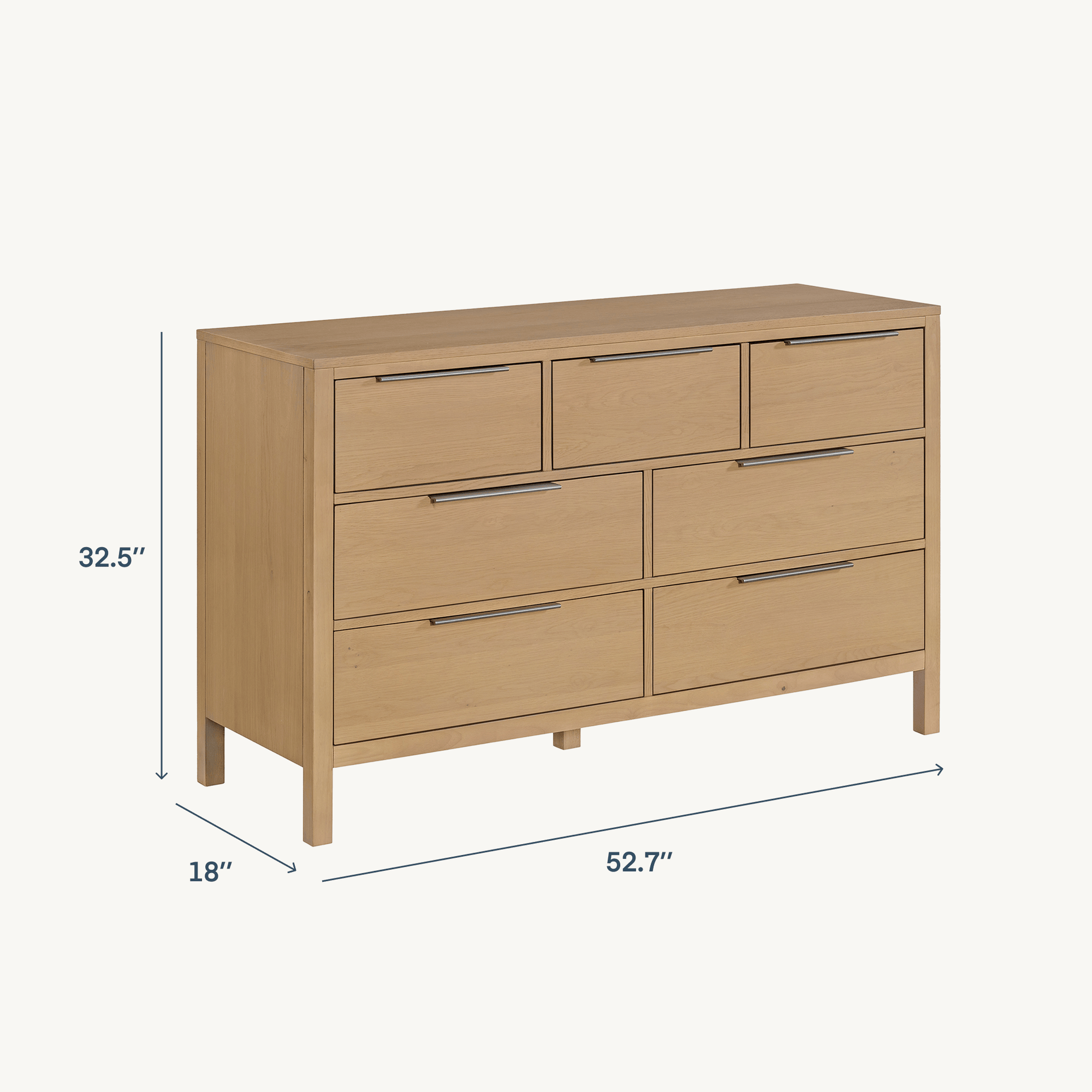A nursery essential, The Newport Dresser features a seven-drawer design to optimize space and organization. Pair it with the matching changing topper (sold separately) for a seamless transition from changing table to dresser as your baby grows.