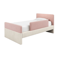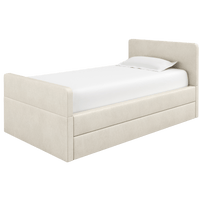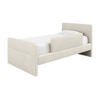 The bed features rounded corners in our signature stain-resistant fabric to keep your little one safe and cozy, and our matching add-ons allow this bed to grow with your family be it by adding safety guard rails or a storage trundle.
